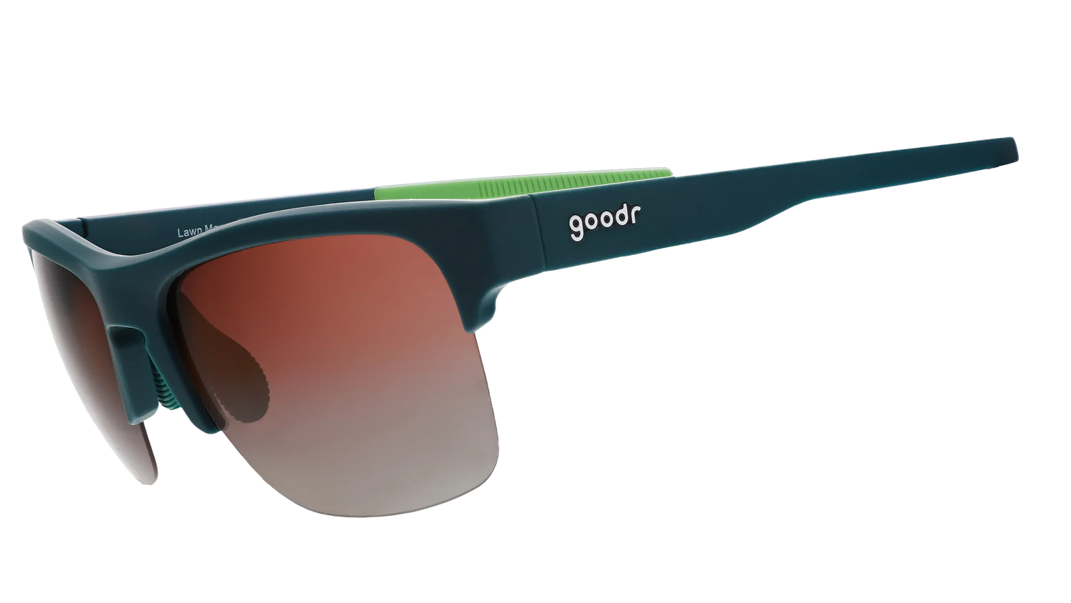 Laat je grasmaaiermotoren draaien en laat de graszodenoorlogen beginnen!!! Deze stevige groene zonnebril heeft een volledig verstelbaar neusstuk en roze glazen met kleurverloop, zodat je je buren kunt laten zien hoe snel, woest en klaar je bent om hun gras te maaien.